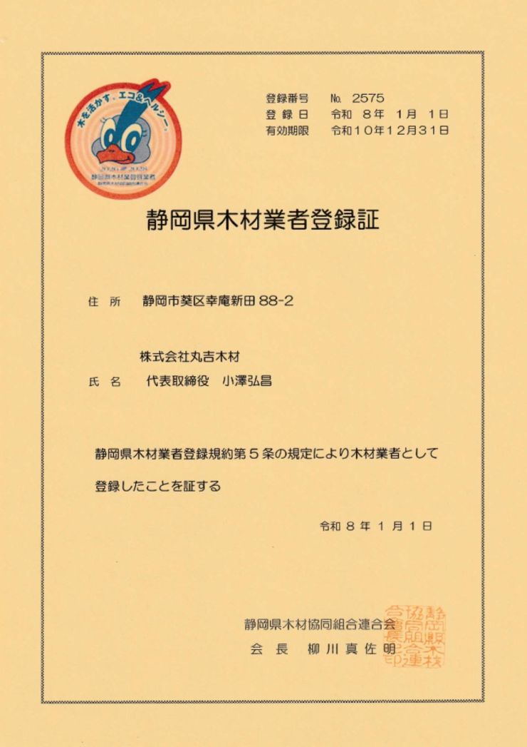 『静岡県木材業者登録証』